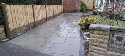 Drive renovation consisting of new fence and Indian stone drive
